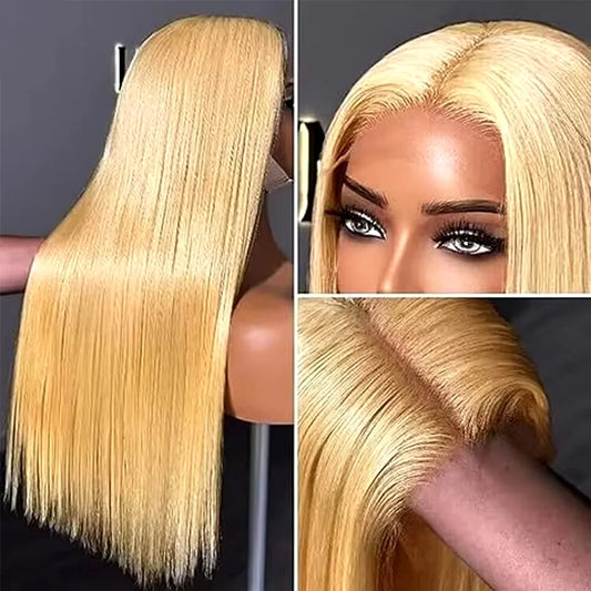 250% Density Honey Blonde Straight Wig | Sophisticated 13x6 HD Lace Frontal | Elegant #27 Colored Brazilian Human Hair | "Dignified" 26+ Inch Pre-Plucked Remy Hair for Radiant Versatile Styling