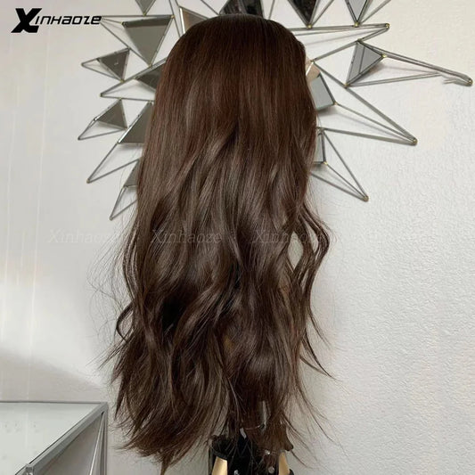 Dark Chocolate Brown Natural Wave Wig | Sophisticated 13x6 HD Lace Frontal | Elegant Peruvian Human Hair Silk Top Wig | "Dignified" 26+ Inch Glueless Remy Hair for Radiant Versatile Styling