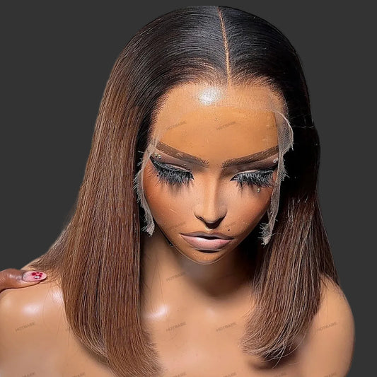 Ultra-High 400 Density Brown Straight Bob HD Lace Wig | Sophisticated 360 Full Lace & 13x6 Frontal | Elegant "Brazilian Remy" Silhouette | "Dignified" Pre-Plucked Wear-and-Go Human Hair for Radiant Versatile Styling
