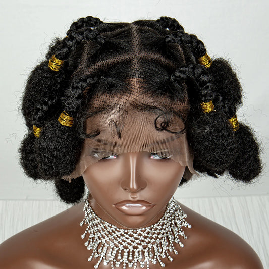 Handmade Bantu Knots Braided Full Lace Wig | Knotless Braids | Baby Hair | Synthetic Hair | Black Women