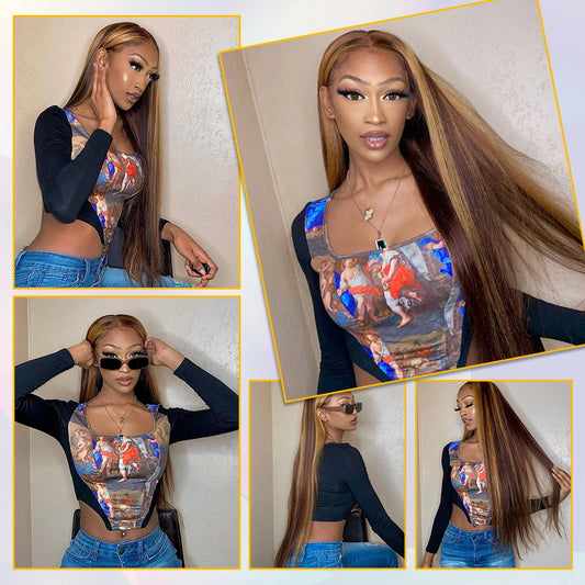 Highlight Glueless Human Hair Wig | Ready-to-Wear 200% Density Ombre Straight 13x6 HD Lace Frontal Wig (Pre-Plucked, Pre-Cut)