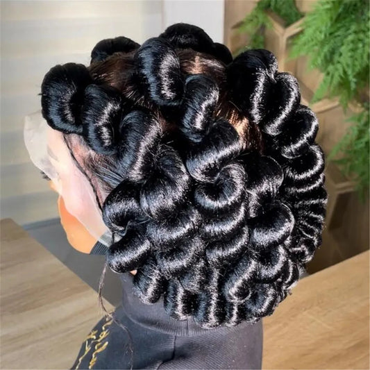 HD Transparent Lace Front Bantu Knots Wig | Synthetic | Full Lace | With Baby Hair | For Black Women