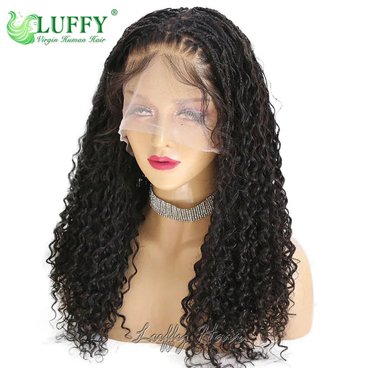 HD Transparent Full Lace Cornrow Knotless Box Braids Goddess Braided Wig