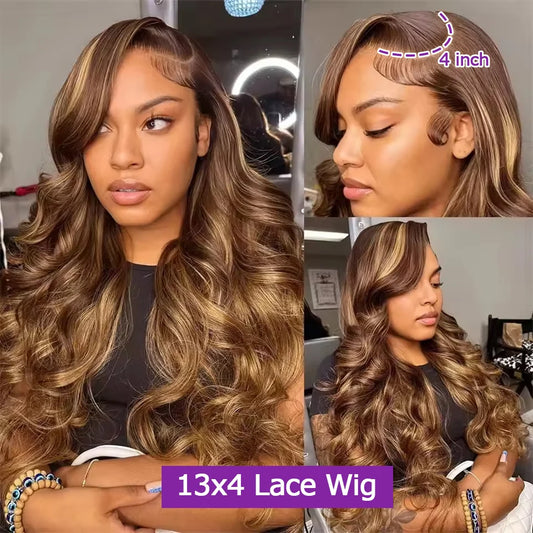 Highlight Ombre 4/27 Lace Front Wig | Honey Blonde Body Wave | Pre-Plucked Baby Hair | HD Lace | 200% Density