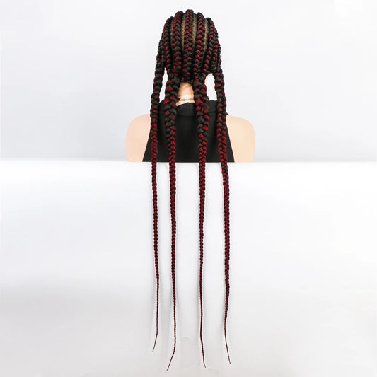 Jumbo Knotless Box Braids Wig | Tribal Cornrows & Faux Locs | Full Lace Front | 36" Look