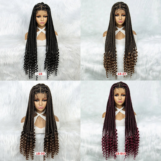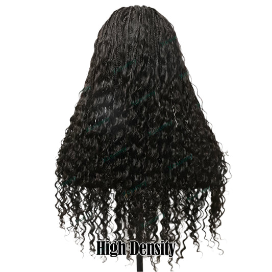 Knotless Boho Braids Full Lace Wig | Curly Human Hair | Transparent Lace | Pre-Plucked | Burmese Hair