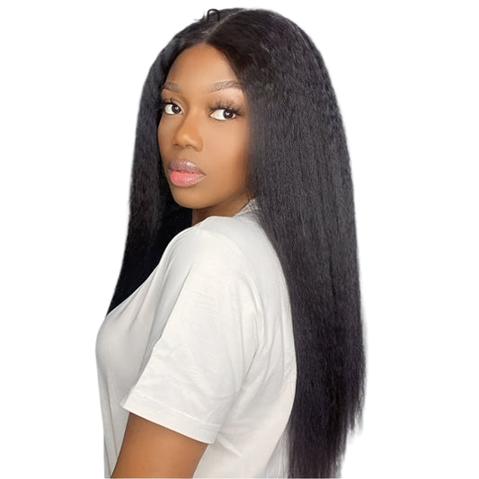 Kinky Straight 360 HD Lace Frontal Wig | Yaki Straight Ponytail Human Hair Wig for Black Women (Transparent Lace, Clearance Sale)