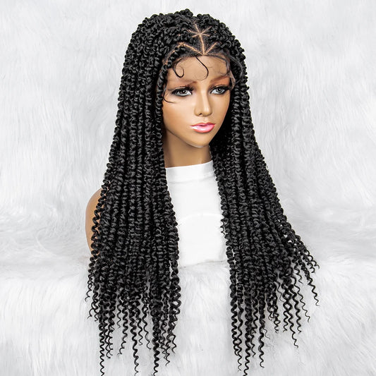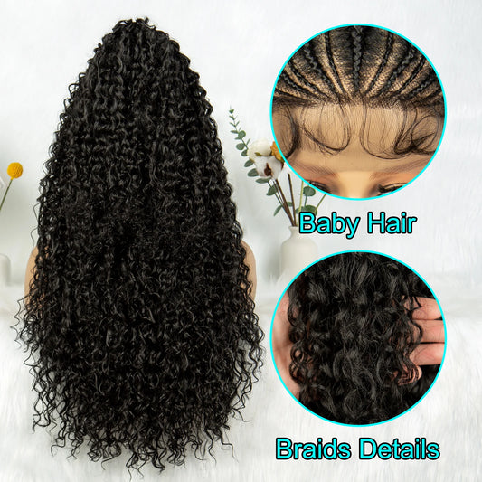 Knotless Box Braids Cornrow Full Lace Braided Wig | Synthetic Crochet Hair for Black Women
