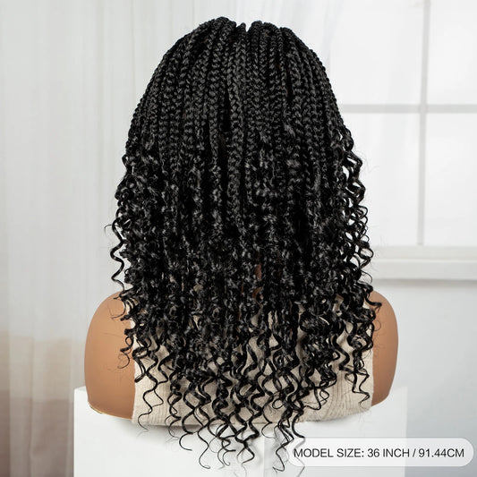 Knotless Box Boho Braided Wig with Curly Ends | Short Bob Style | Full Lace Synthetic Wig for Black Women