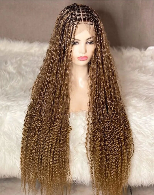 Pre-Braided HD Full Lace Wig | Brazilian Remy Hair | Boho Box Braids | 250% Density | Transparent Lace
