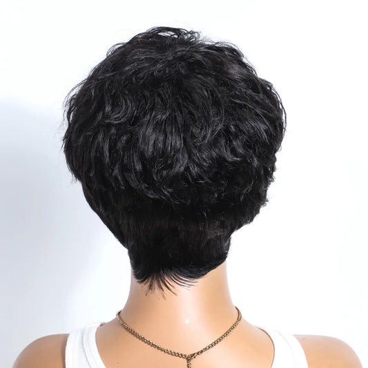 Pixie Cut Human Hair Wig | Natural Color Wavy Remy Hair | Short Cut Wig