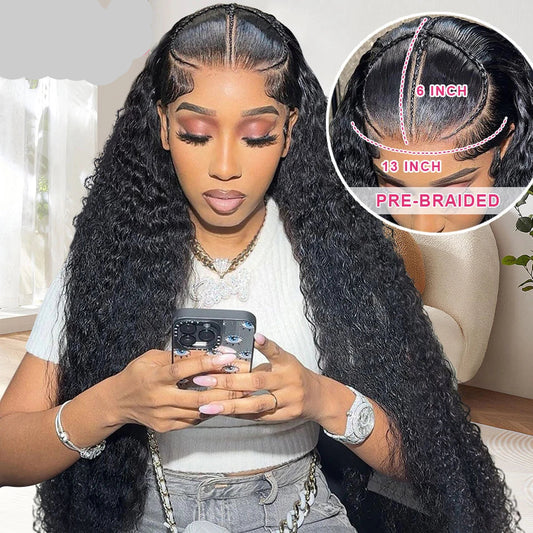 Pre-Braided Deep Wave Wig | Glueless HD Lace Frontal | Human Hair | Ready-to-Wear | 13x4/13x6