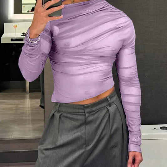 Deconstruction Perspective Single-Shoulder Tee | Sophisticated Pleated Long-Sleeved Silhouette | Elegant "Breathable" Summer Camiseta | "Dignified" Sexy Deconstructed Top for Radiant Versatile Styling