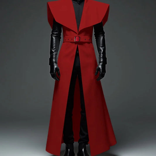 Men’s Long Style Sleeveless Trench | Sophisticated Lapel Turn-Down Collar Silhouette | Elegant "Ankle-Length" Streetwear Cardigan | "Dignified" Open Stitch Coat with Belt for Radiant Versatile Styling