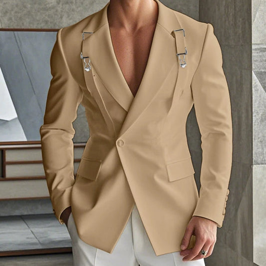 Deconstruct Metal Buckle Suit Coat | Sophisticated Well-Fitting Blazer Silhouette | Elegant "Single Button" Casual Outerwear | "Dignified" Solid Long-Sleeved Blazer for Radiant Versatile Styling