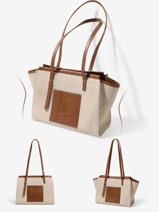 Women’s Vintage Canvas Laptop Bag | Premium Cow Leather Briefcase & Shoulder Bag | Large Capacity "Cartoon Printing" Work Tote | Sophisticated Valentine's Day Gift for Professionals (Model MD22CT9172)