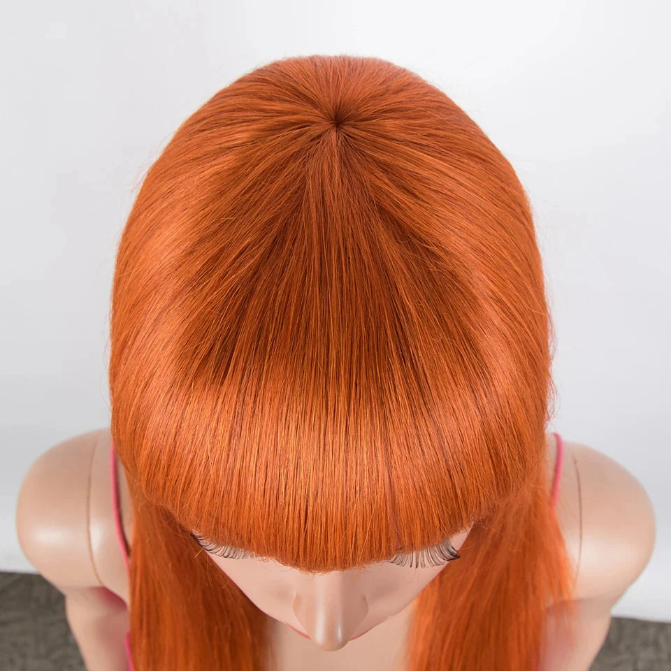 Ginger Orange Straight Human Hair Wig with Bangs | Full Machine Made Peruvian Remy Hair (Wear & Go)