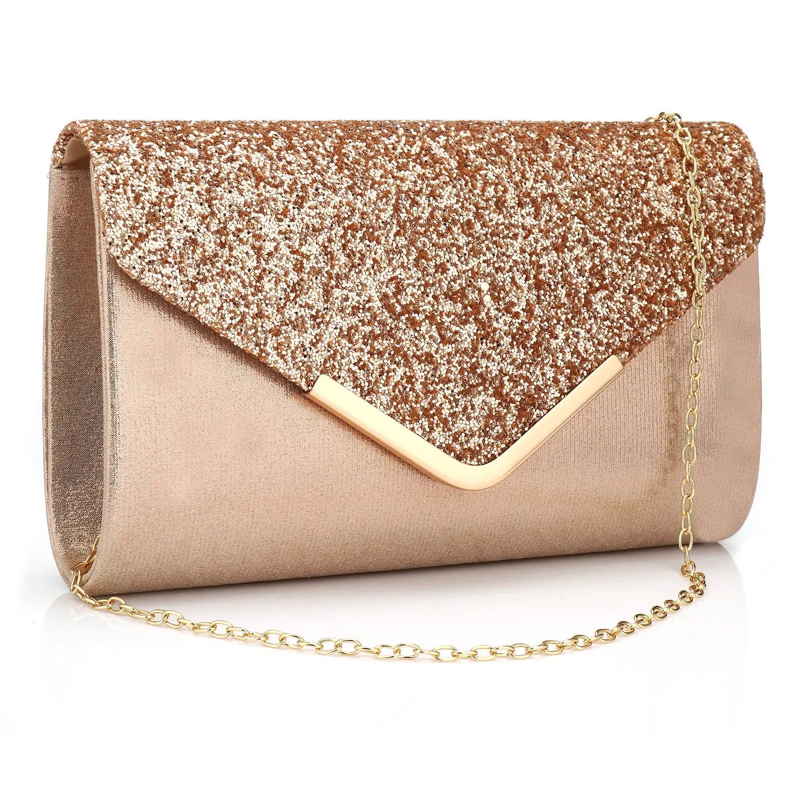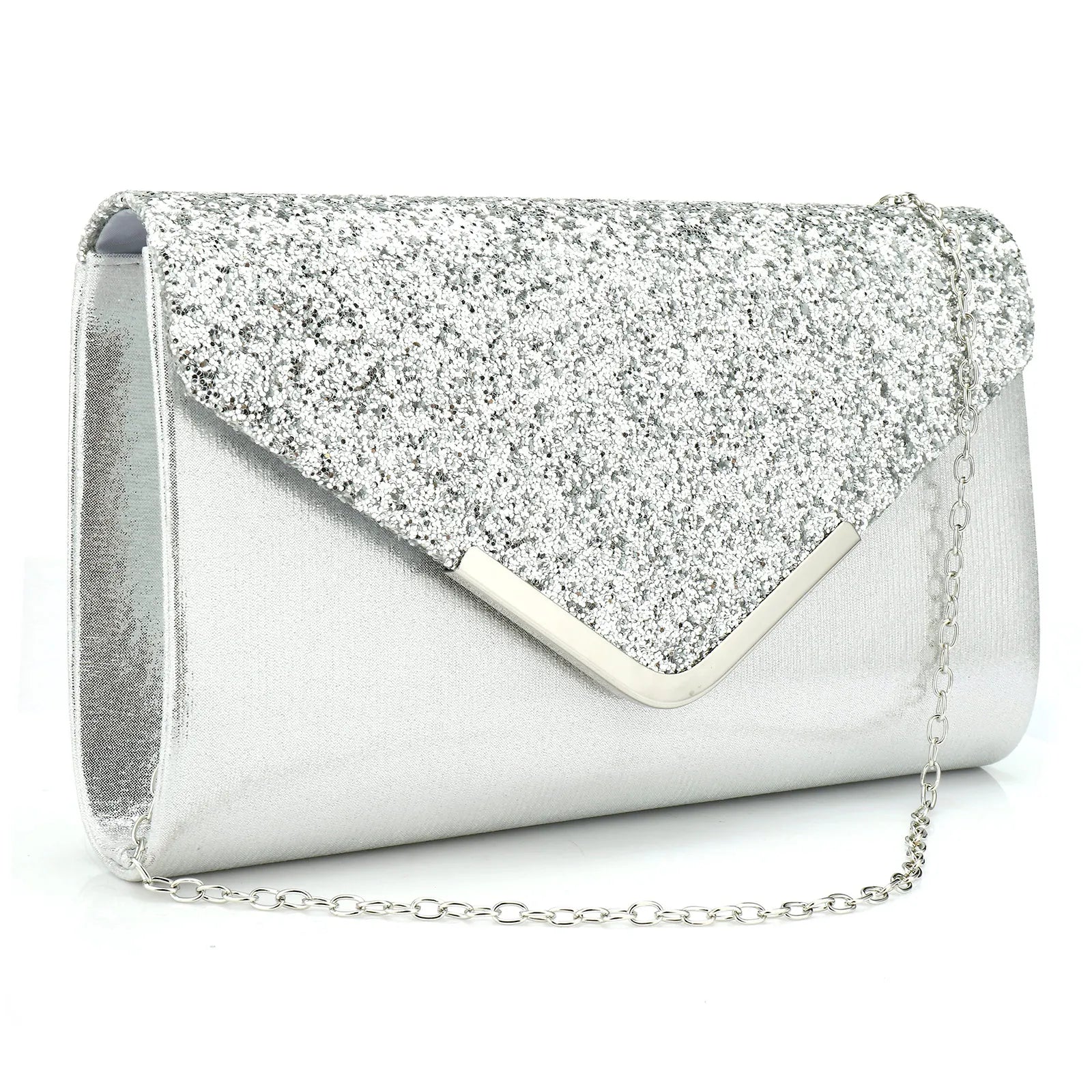 Sequined Envelope Clutch Bags For Women Fashion Gold Purses And Handbags With Chain Shoulder Bags Wedding Party Clutches