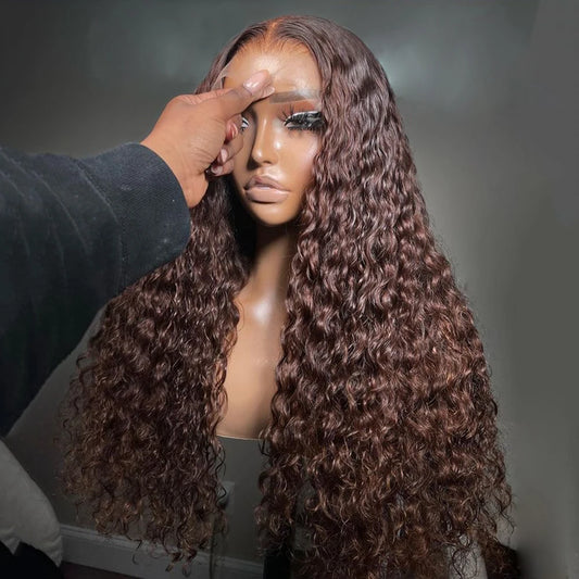 30 & 36-Inch Chocolate Brown Deep Wave HD Lace Wig | Sophisticated 13x6 & 13x4 Transparent Frontal | Elegant "100% Brazilian Remy" Silhouette | "Dignified" Pre-Plucked Water Wave Human Hair for Radiant Versatile Styling
