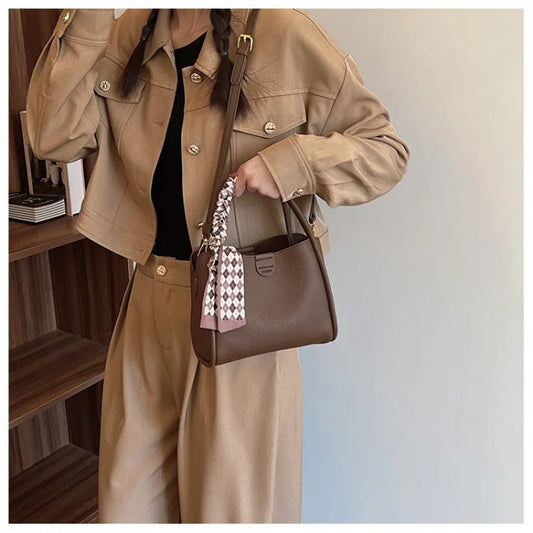Fashionable Casual Lock Buckle Handbag Women's Bucket Bag | Trendy Single Shoulder High-End Crossbody Bag Soft PU Leather