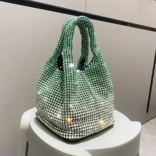 Shiny Crystal Clutch Purse Bucket Shoulder Bag Rhinestone Handmade Purses and Handbags | Luxury Designer Evening Clutch Bag Purse