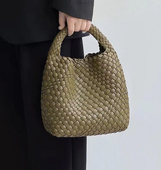 PU Woven Composite Bucket Bag | Soft Fashion Criss-cross Tote