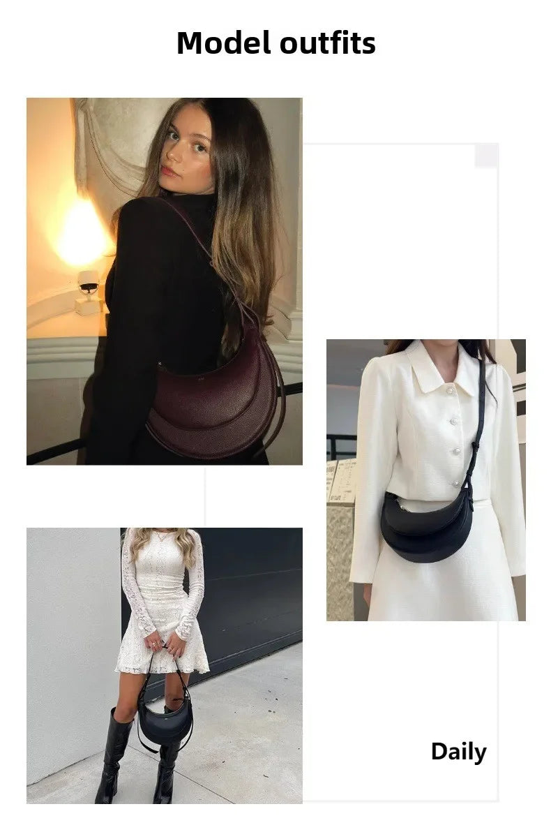 Women's Casual Tote Bags Handbag Luxury Designer Large Capacity PU Half Moon Crescent Bag Saddle Commuting Shoulder Bags Woman
