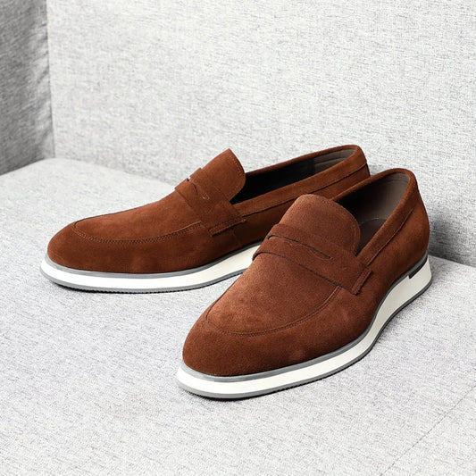 Classic Luxury Men's Cow Suede Penny Loafers | Genuine Leather Slip-on Casual Business & Social Flats