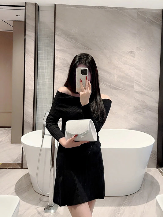 A Shiny Rhinestone Velvet Evening Bag | Romantic White Wedding & Formal Party Clutch