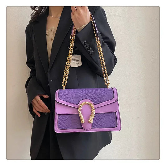 Classic Handbag Letter Design Shoulder Bag with Metallic Chain | Square Bag, Women's Suede Messenger & Winter Wedding Bag