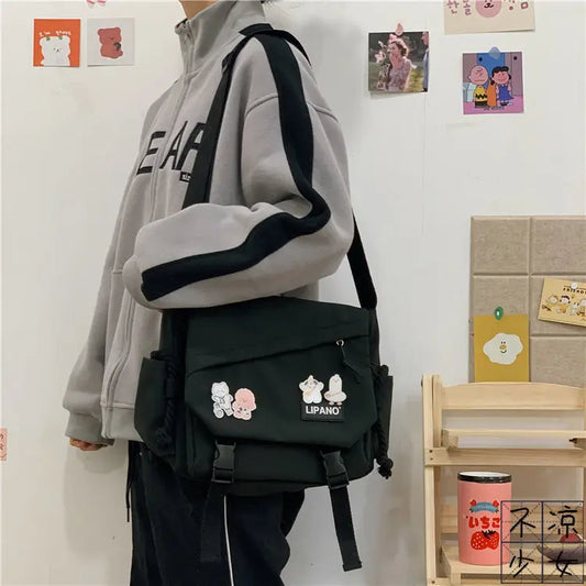 Japanese Simple Messenger Bag | Student Nylon Waterproof Canvas Handbag & Shoulder Crossbody Bag