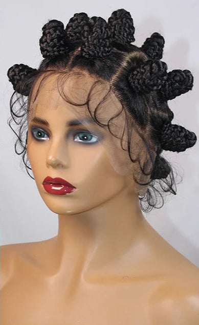 Full Lace Bantu Knots Braided Wig | Knotless Braids | Distressed Box Braids | Heat Resistant Synthetic Hair | For Black Women