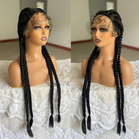 32" Cornrow Braided Wig | Full Lace Box Braids | Transparent Lace Front Wig for Black Women