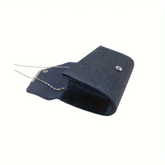 1pc Sparkling Silver Long Wallet Clutch | Ladies' Dinner Bag with Chain | Elegant Square Evening Purse for Weddings and Parties