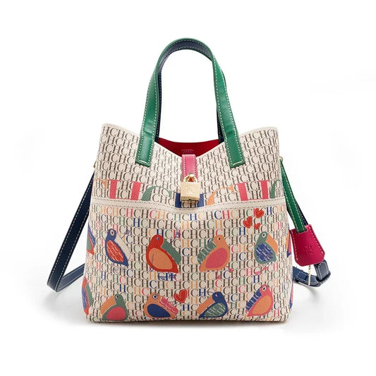 Exquisite Flower Printed Women's Large Capacity Handbag | Luxury Floral Messenger Bag with Applique Details | Fashion Design PVC Leather Bucket Bag