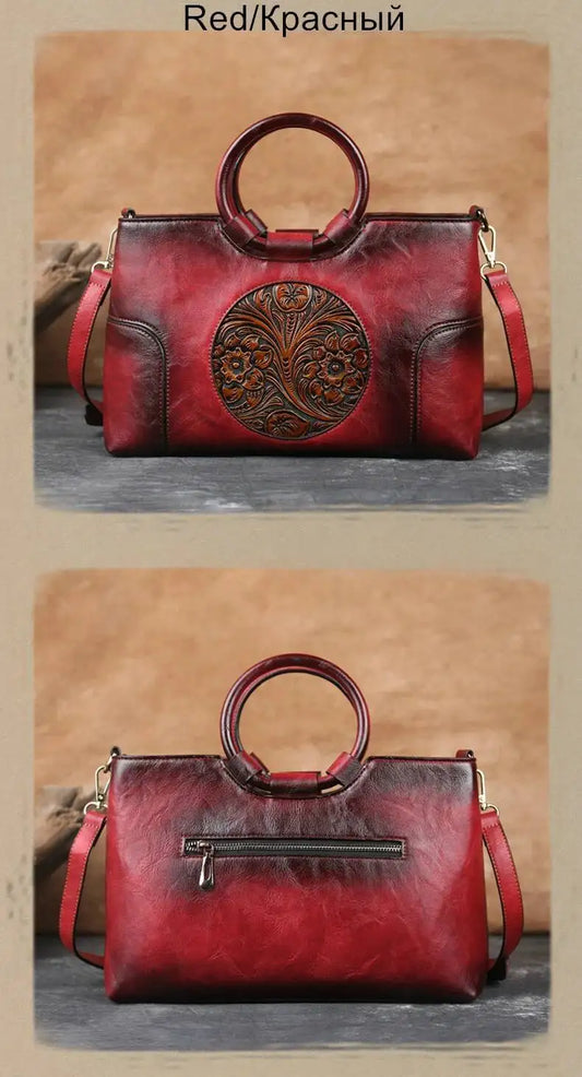 New High Quality Leather Women Handbag Retro Handmade Embossed Shoulder Bag For Women | Large Capacity Female Messenger Bags