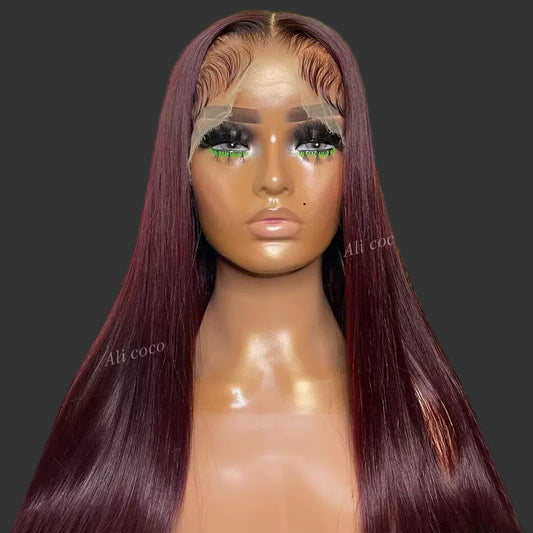 Dark Burgundy Straight HD Lace Wig | Sophisticated 180% Density 13x6 & 13x4 Frontal | Elegant "Brazilian Remy" Silhouette | "Dignified" Pre-Plucked Natural Hairline Human Hair for Radiant Versatile Styling