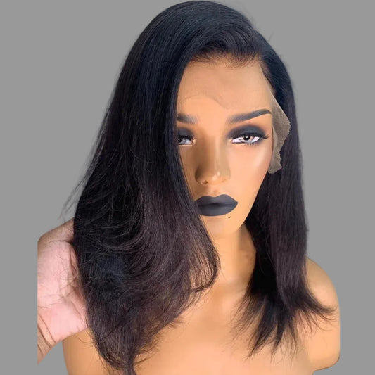 Light Yaki Straight Bob Wig | Sophisticated 5x5 Silk Base & 13x4 HD Transparent Lace | Elegant "Natural Texture" Brazilian Human Hair | "Dignified" 4–16 Inch Short Yaki Remy Wig for Radiant Versatile Styling