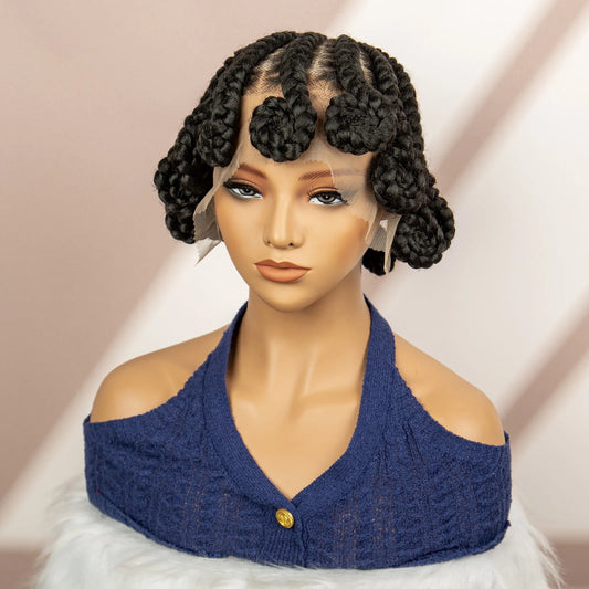 Natural Color Bantu Knot Braided Wig | Cornrow Braids | Full Lace | Heat Resistant Synthetic Wig | African Women