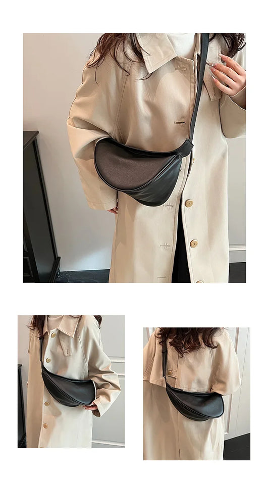 Elegant Solid Saddle Bag | Versatile Shoulder & Crossbody Purse