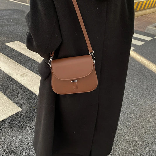 Vintage PU Leather Crossbody Bag | Small Saddle Shoulder Bag with Wide Strap & Flap Design