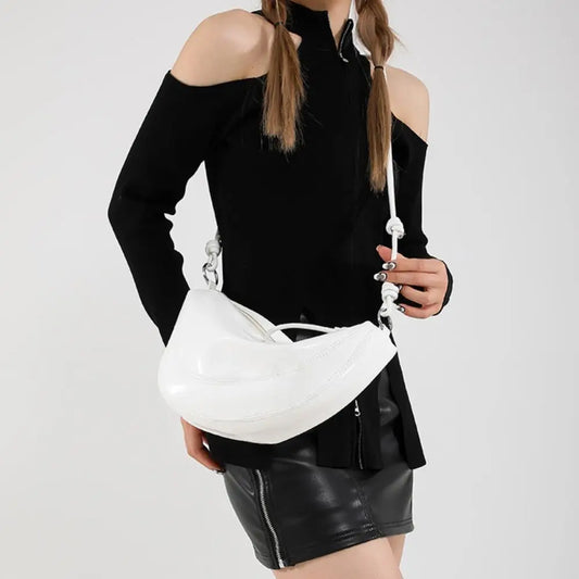 Studded Crescent Saddle Bag | Punk Shoulder & Crossbody Handbag