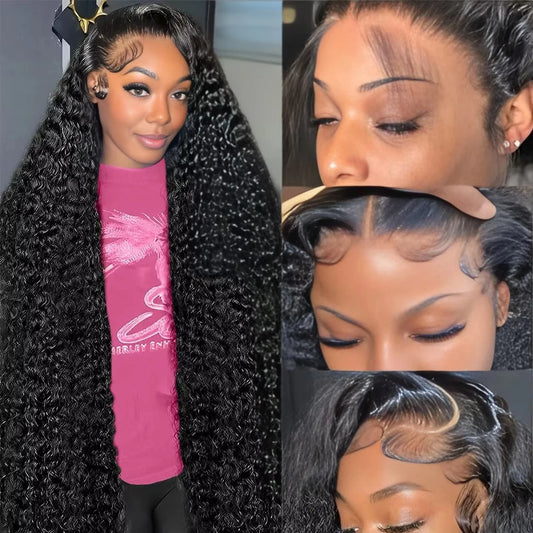 200% Density Deep Wave Curly HD Lace Frontal Wig | 13x6 Glueless Water Wave & 13x4 Pre-Plucked Human Hair Lace Front Wigs (30-40 Inch)