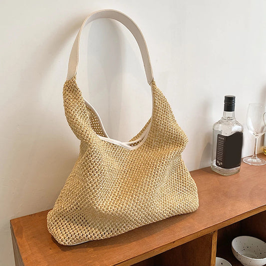 Woven Shoulder Bag for Women | Large Capacity Straw Hobo Bag | Beach Summer Handbag with Bonus PU Clutch Purse | Versatile Tote for Vacation & Travel