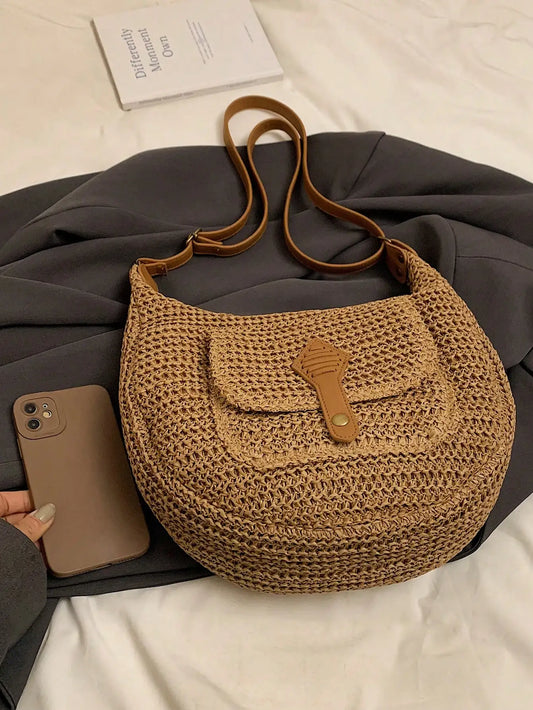 Trendy Circular Straw Saddle Bag | Soft Crossbody Purse