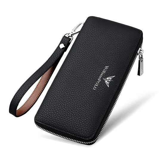 Men's Business Cowhide Long Handbag | Large Capacity Split Leather Wallet | Casual Card Organizer with Mobile Phone Pocket & Zipper Coin Pouch (Model 121#)