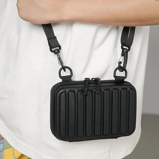 Unisex Army Green Mini Box Crossbody | Casual Leisure Shoulder Sling Bag | Durable PVC Solid Color Handbag with Striped Texture & Zipper Closure