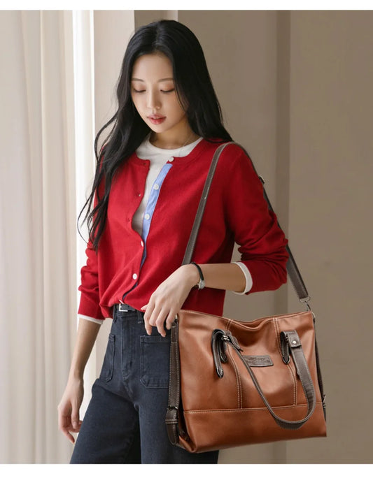Simple Vintage Large Capacity Tote Bag | Casual Fashion Handbag & Shoulder Crossbody for Women | Versatile PU Leather Square Bag for Daily Travel & Commuting