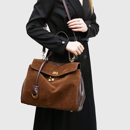 Luxury Rodeo Brown Suede Tote | Premium Microfiber Leather Kelly Style Shoulder Bag | Large Capacity Fashion Handbag with Gold Lock Buckle (Model 5788678888)