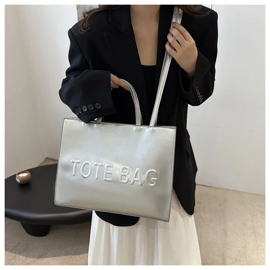 Large Capacity Design Brand Women's Tote | Elegant Letter Pattern Fashion Handbag | Versatile Shopping Crossbody with Interior Zipper Pocket
